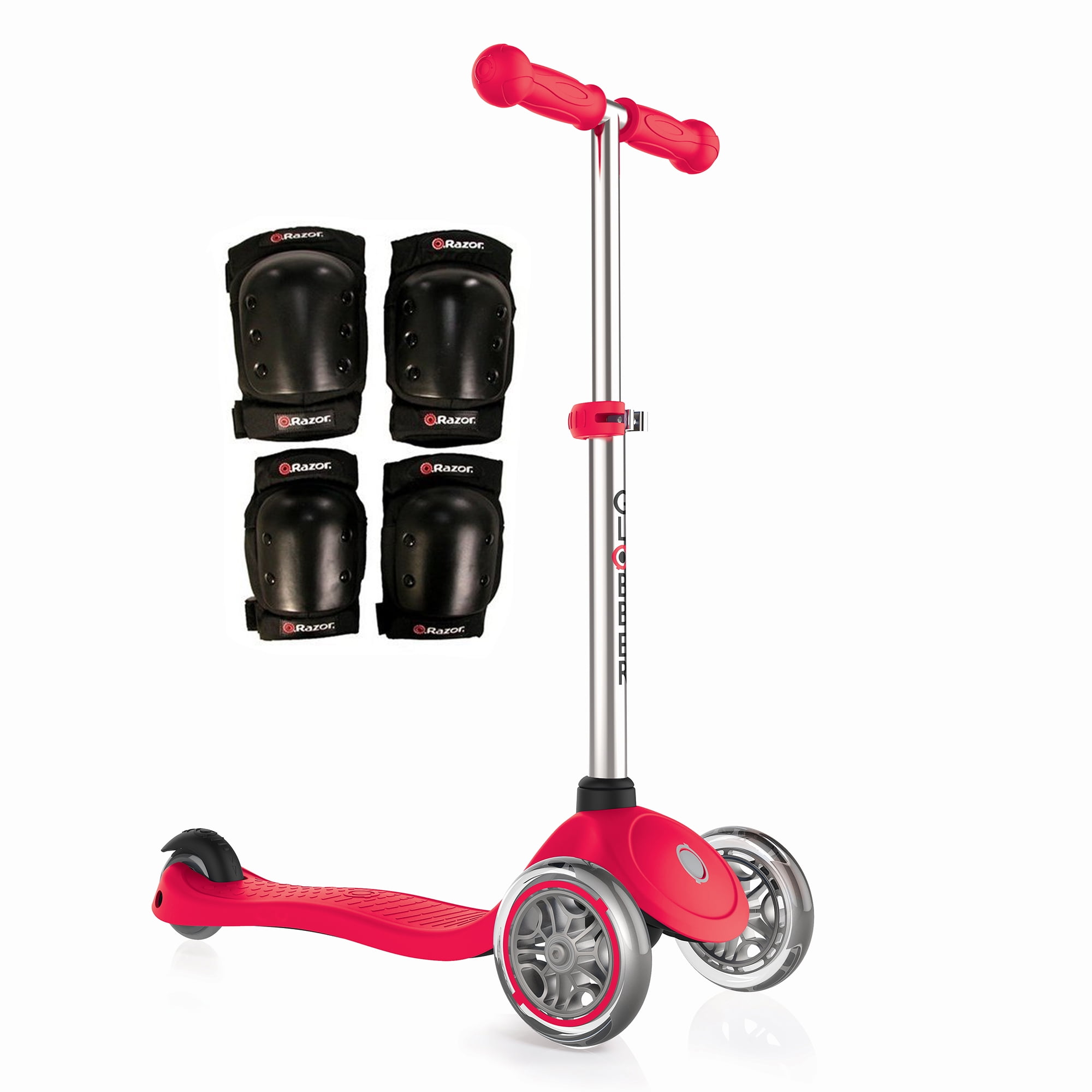 Globber Primo 3 Wheel Kids Kick Scooter Bundle With Razor Elbow Knee Pad Set Walmart Com