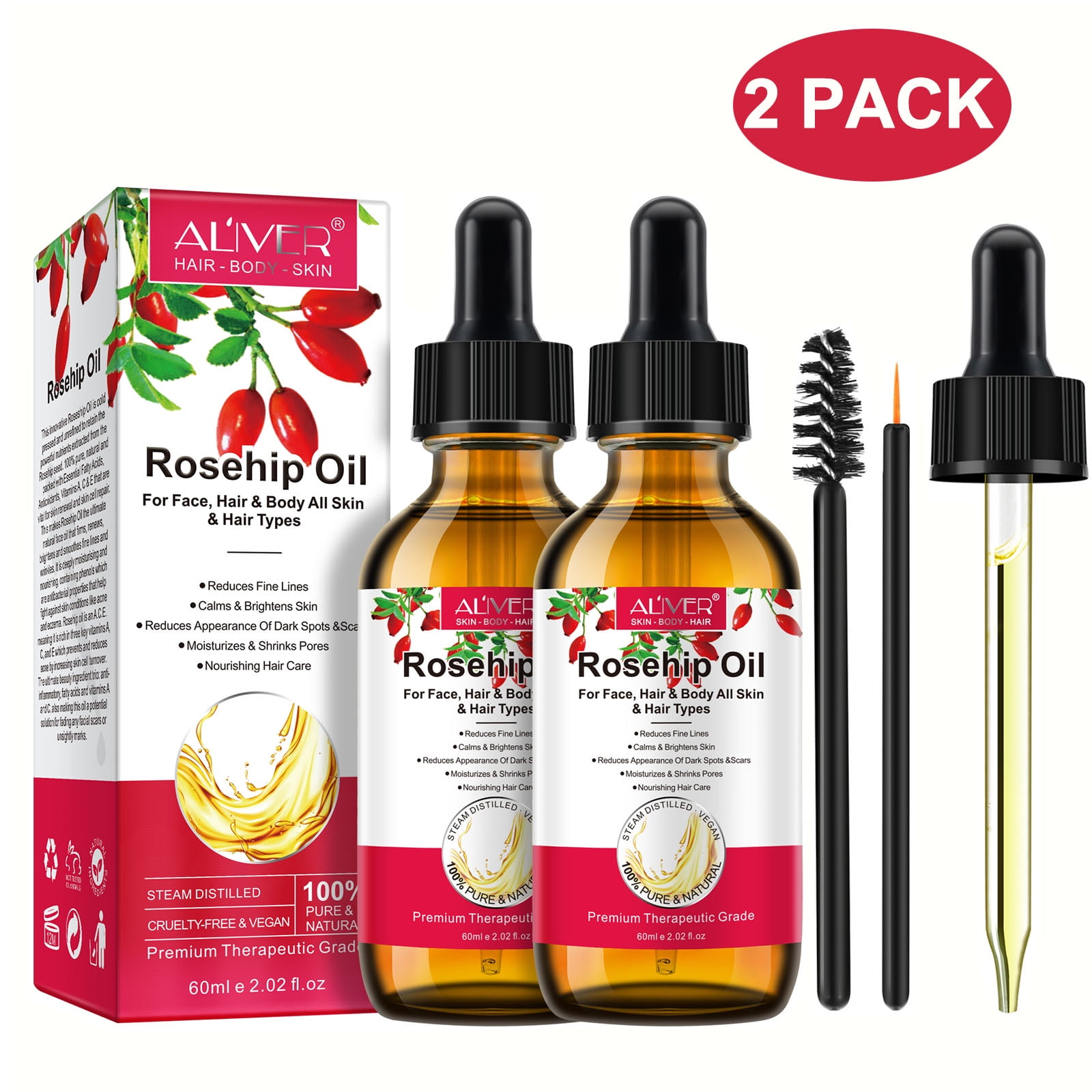 Aliver 120ml Organic Rosehip Essential Oil For Hair Growth Dry Skin Care 100 Pure Natural Cold Pressed Serum Anti Aging Moisturizer Walmart Com